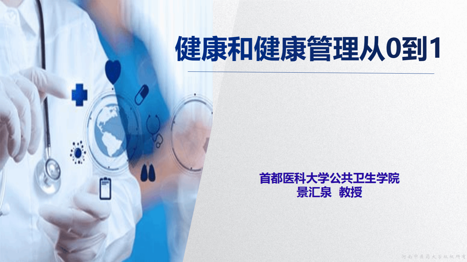 景汇泉教授围绕“什么是健康,影响健康的因素有哪些,如何进行健康管理”三个方面进行了阐述,首先,景教授引用了一句古语“为人父母不知医,谓不慈,为人子女不知医,谓不孝”,来说明健康就是我们身边的事,健康管理也应该从对身边人健康的关心入手。另外,健康也不仅仅是没有疾病或者虚弱,而是身体,心理以及社会适应完好状态。随后,针对“影响健康管理的因素有哪些”这个问题,景教授先让同学们自己想问题,同学们积极在线上和景教授进行了交流,景教授总结了同学们的答案,又补充了有“遗传因素,社会因素,气候因素,医疗条件,个人生活方式”等。接着,景教授又阐述到为了做好健康管理,要做好三级预防,即无病预防,临床前预防,临床预防。景教授又分别举例进行了解释。对于我们每一个人,要培养阳光的心态,让过去的事情过去,未来是美好的,要抓住现在的幸福。最后,景教授让大家谈谈各自的收获,并对大家的疑问进行了解答。