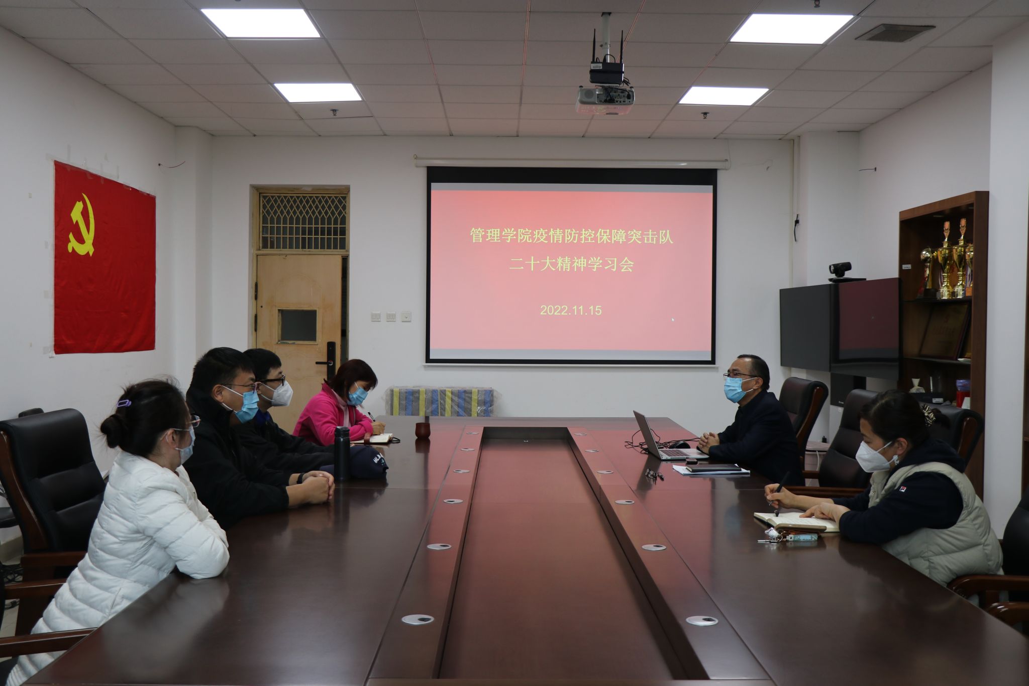 学院疫情防控保障突击队在紧张繁忙的工作之外,还积极组织召开“党的二十大精神学习会”,从党的二十大精神以及二十大报告中关于“推进健康中国”的部署中汲取奋进力量,打好校园疫情防控阻击战,以实际行动投身健康中国建设。