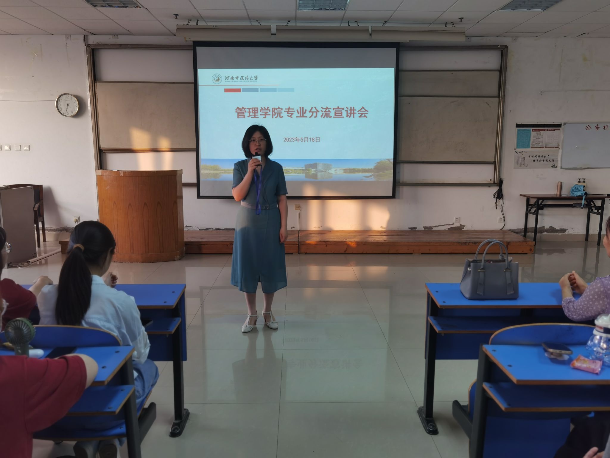 会议伊始,毛海燕副院长向同学们强调了专业分流宣讲会的必要性和重要性,希望同学们认真聆听,深入思考,正确选择。张丽青院长就“学会选择和坚持”,告诉同学们人生就是一个个的选择过程,选择前要慎重,选择后要坚持,任何选择都没有绝对的好与坏,关键要保持积极、勇敢、坚强的人生态度,走好选择的路。张院长还从不同角度介绍了公共管理专业的发展情况。随后健康服务与管理专业负责人张慧老师、应用心理学专业负责人潘玲老师和市场营销专业负责人赵绿明老师为分别为同学们介绍了分管专业的专业发展现状、特色优势及未来发展规划,并详细讲解了专业的就业前景和考研方向等相关问题。