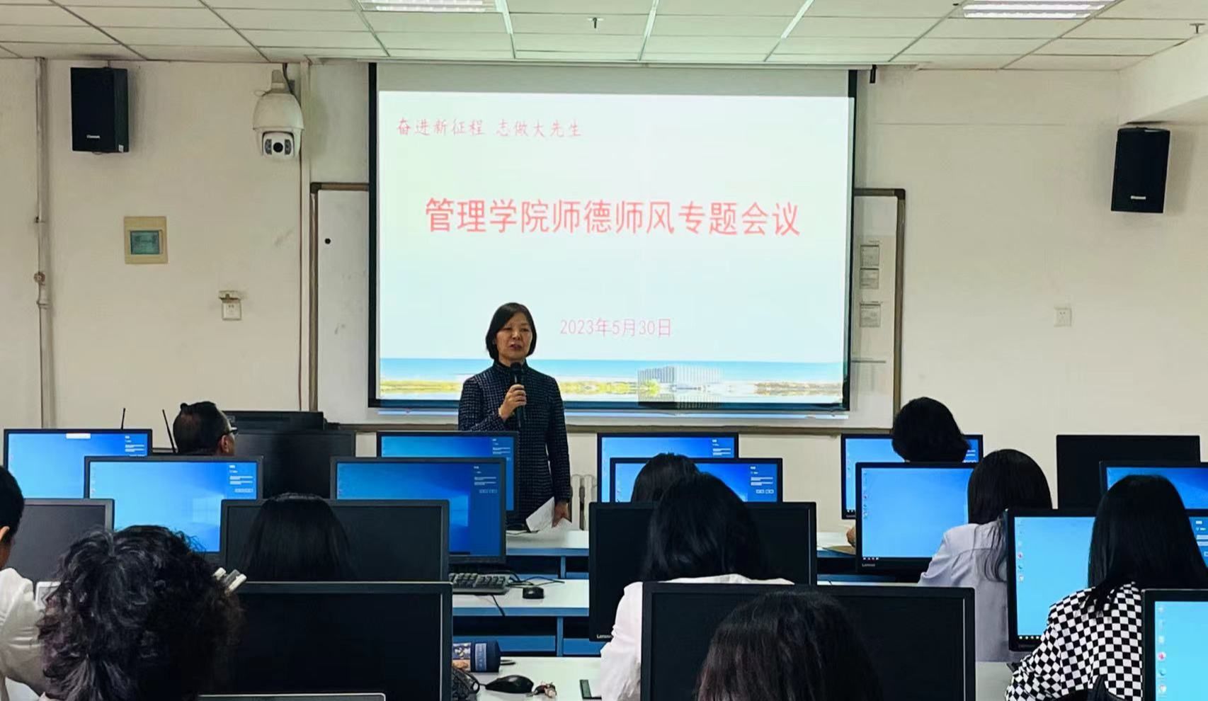 (图/杨静静 文/黄璐)5月30日下午,飞卢小说 师德师风专题会在教学实验大楼BS502教室召开。学院领导班子成员和全体教职工参加会议。会议由院长张丽青主持。
