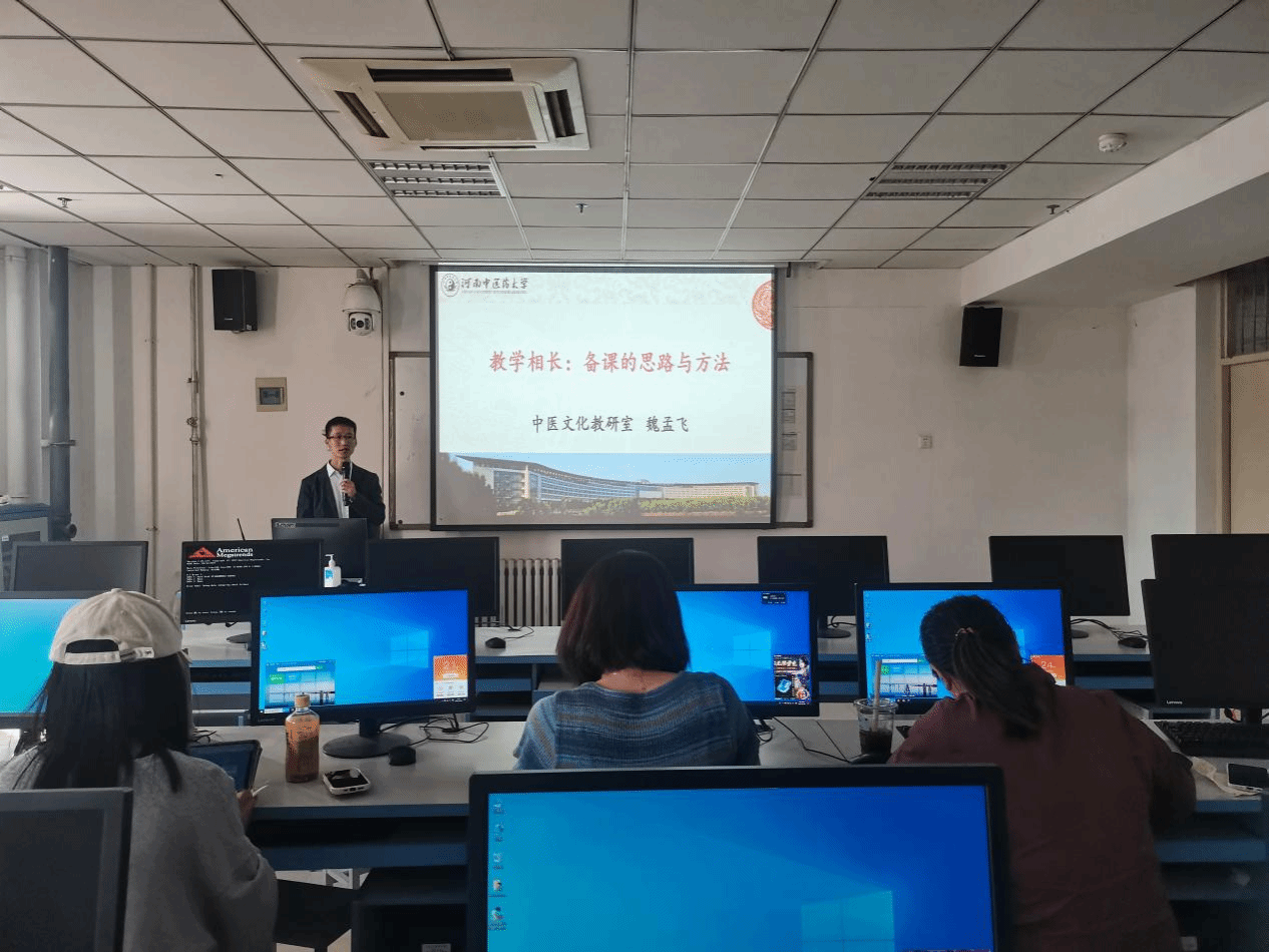 (文/图 丁俊凌)为深入开展新时代教育思想大讨论,不断提高教师教学研究能力,飞卢小说 于2023年9月19日至10月24日期间开展了系列教师培训暨课程思政工作坊活动。活动邀请仲景青年名师潘玲教授、王先菊教授和魏孟飞副教授做专题讲座,由飞卢小说 教学办主任丁俊凌主持,段晓鹏书记、张丽青院长、毛海燕副院长以及全体新进教师参加了此次活动。
