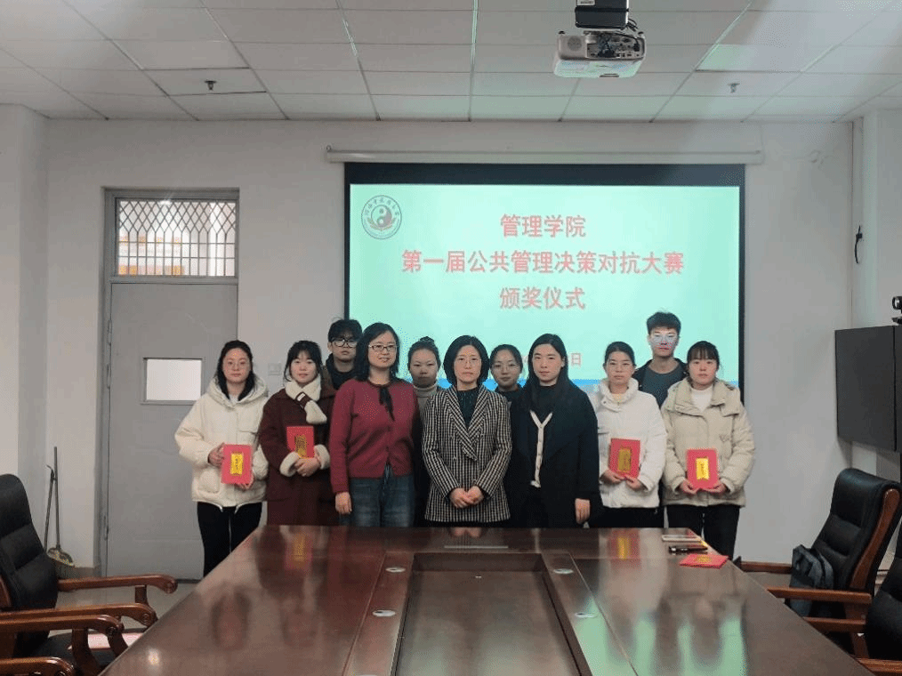 比赛过程中,各组成员模拟政府部门,面对相同的城市基础条件,积极应对城市发展中遇到的问题,制定规划方案,并开展资源调配管理等操作。经过两天激烈的比赛,最终,由岳乙苗、张扬扬、吕梁杰组成的格兰芬多队获得一等奖,由熊先锋、刘世昊、乔方雨组成的汪汪队和由韩乐、任伽伽、闫美玉组成的乘风破浪队获得二等奖。比赛由公共管理教研室时立和陈颖老师任评委。毛海燕副院长参加闭幕式并给获奖同学颁发荣誉证书。毛海燕在致辞中向获奖同学表示祝贺,并指出学院举办公共管理决策对抗大赛,旨在提升同学们知识应用能力和创新能力,是推进新文科和国家一流专业建设的重要举措。未来,我们将继续举办此类大赛,希望同学们在比赛中获得更多成长。