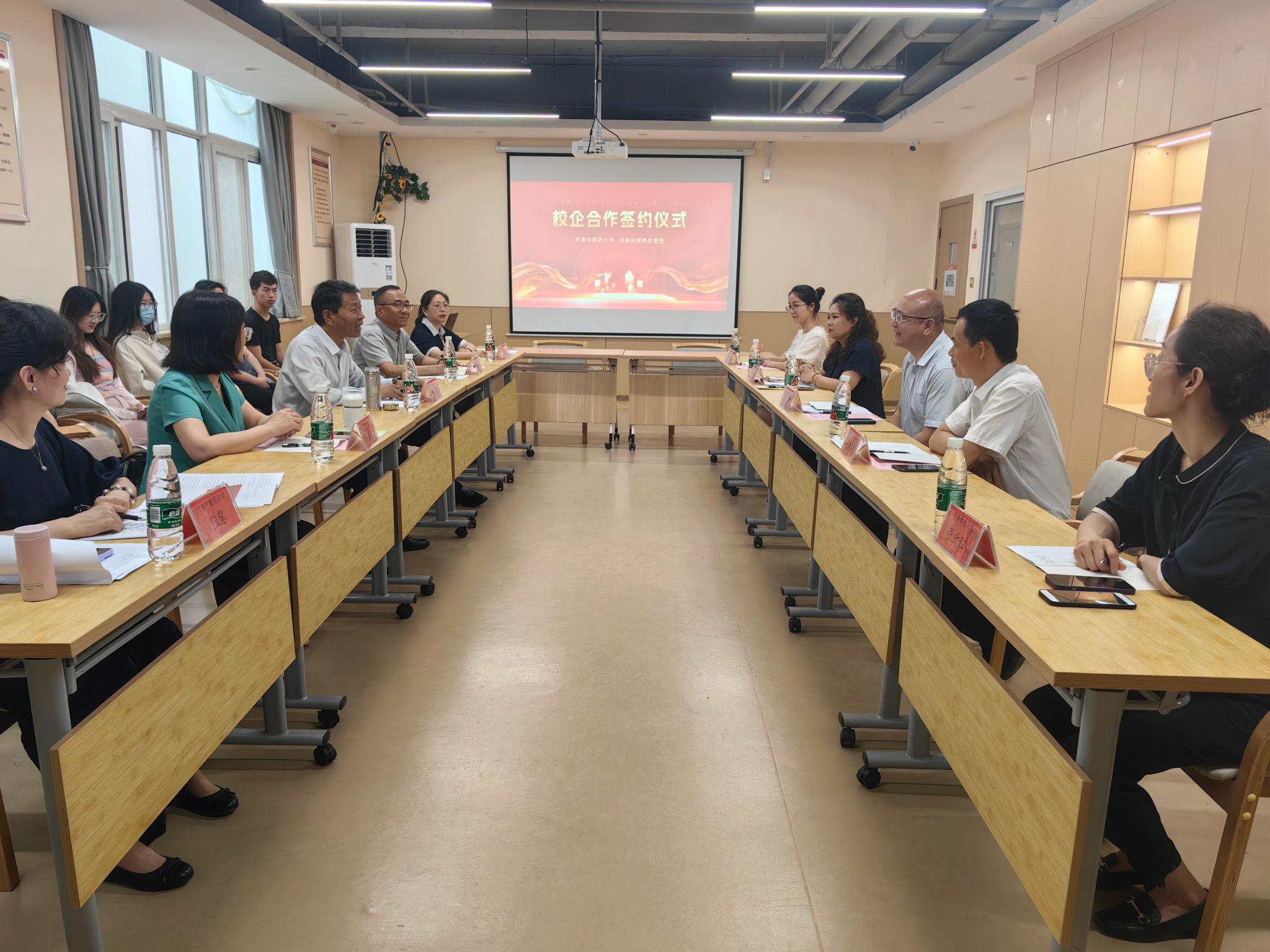 座谈会上,河南安泰养老集团董事长刘泰对张振强副校长一行表示热烈欢迎,详细介绍了河南安泰养老集团的发展历程、市场板块、战略发展、人才需求等情况,表达了今后的合作意向。