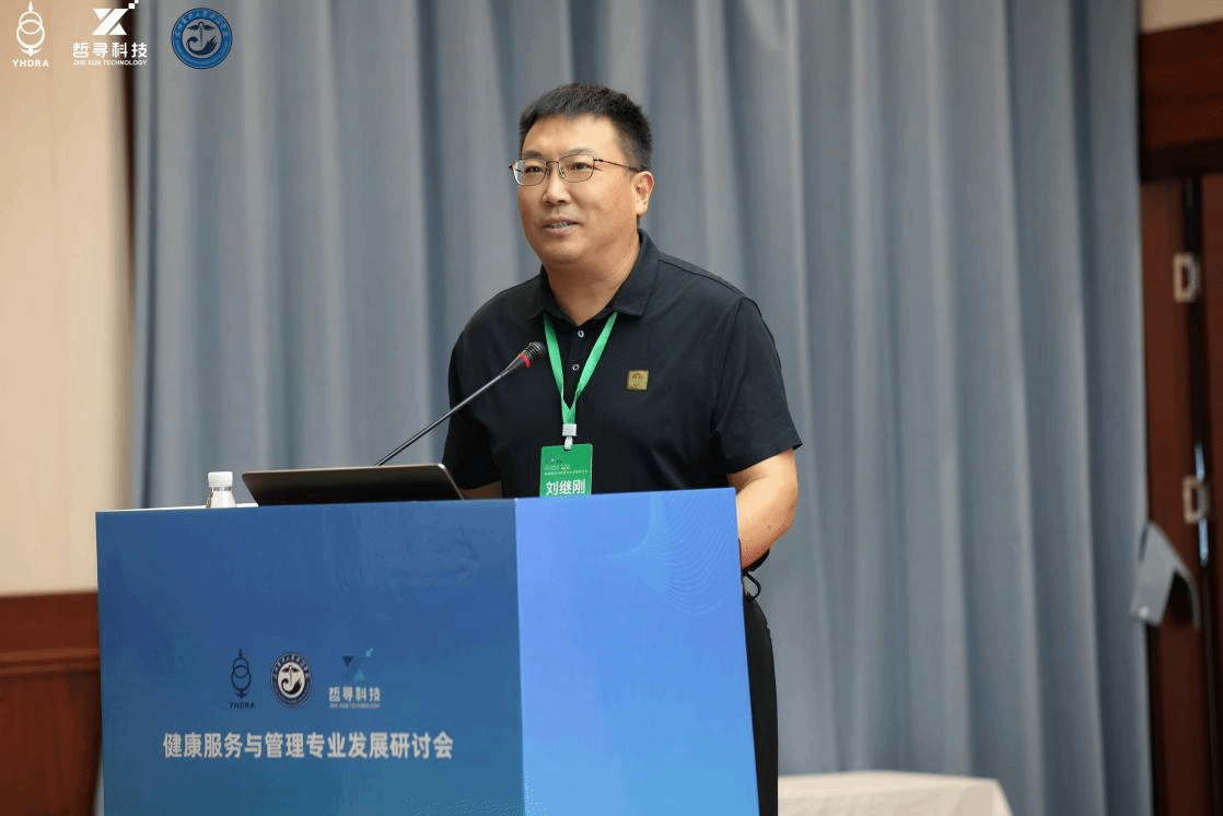 在主题分享环节,学院院长刘继刚教授受邀做了题为《产教融合视域下健康服务与管理专业实践教学路径探索》的报告,他从“引进来、走出去、以赛促学”三个方面着重介绍了学院健康服务与管理专业产教融合实践教学的路径和成果,得到了与会专家学者的一致认可。
