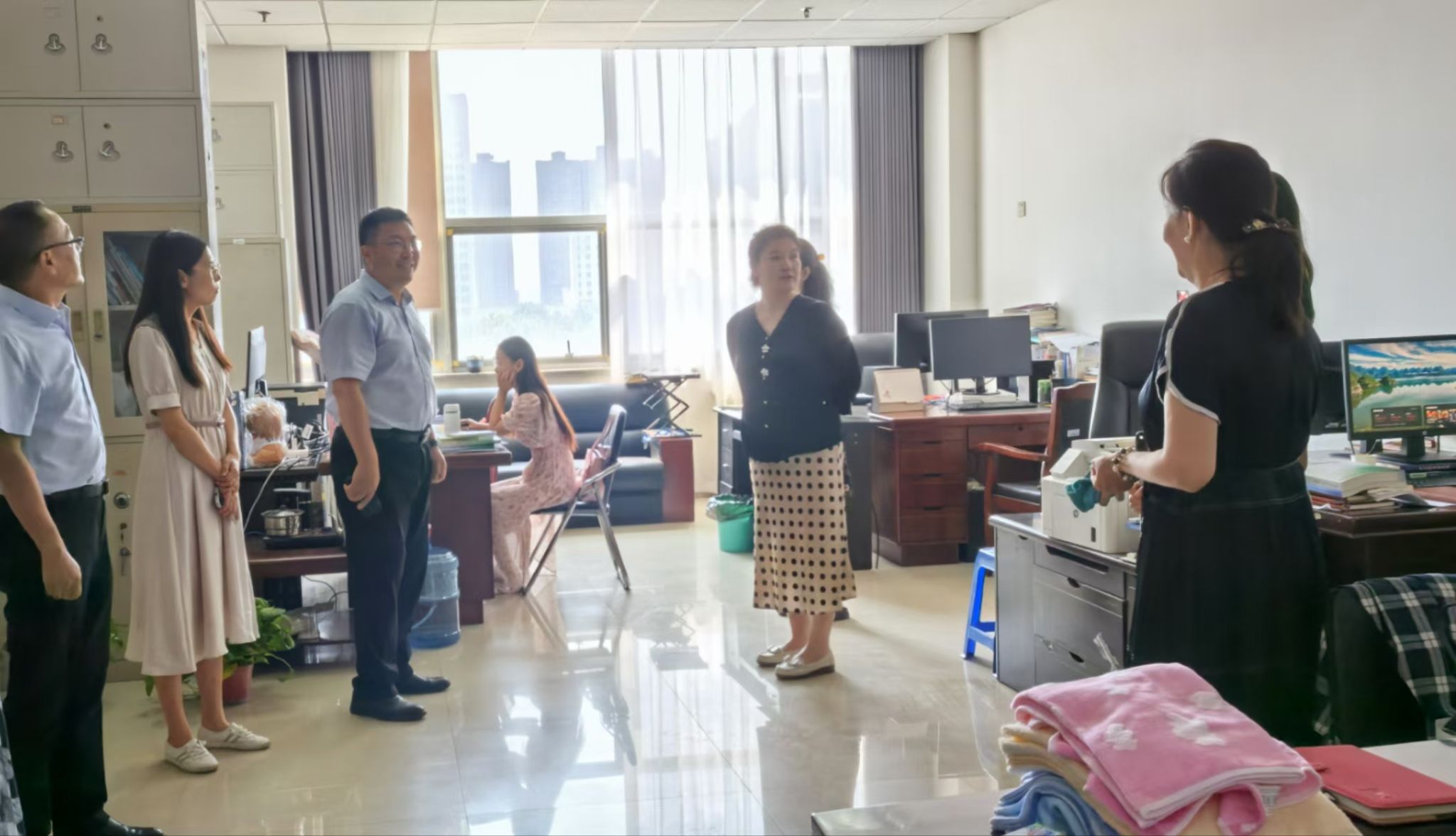 会后,学院全体班子成员到行政办公室、教研室、实验中心进行走访,对安全和卫生工作进行了检查督导。(编辑 黄璐;审核 毛海燕)
