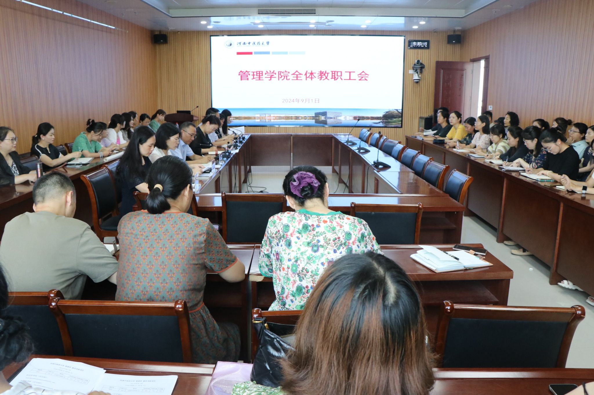 会上,副院长潘玲对新学期教学工作以及期初教学检查进行了安排,对全体教职工进行了统战知识培训。副院长赵海阳就上半年科研工作进行了全面总结与通报。副院长万谦对双院协同机制进行了介绍。党委副书记毛海燕通报了暑期学院办公环境改造与办公地点变更的情况,安排了工会工作,进行了师德师风专题培训。