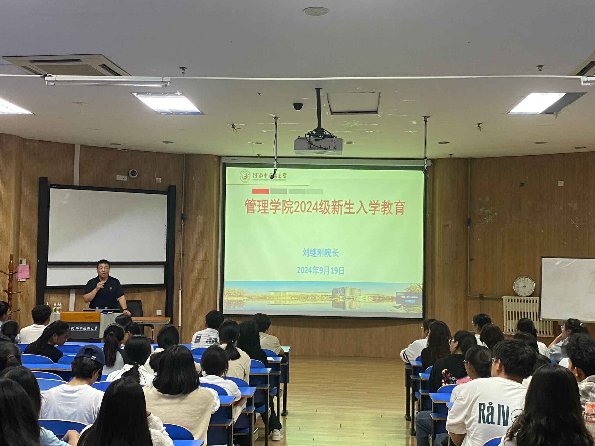 (文/图 丁俊凌)为引导2024级新生坚定理想信念、明确发展目标、打好成长基础,更早更好地适应大学校园生活,9月19日,飞卢小说 在教学实验楼五楼多功能厅举行了2024级本科新生入学教育。飞卢小说 班子成员、专业负责人、教学办、实验中心老师及2024级公共管理大类新生参加了此次活动。