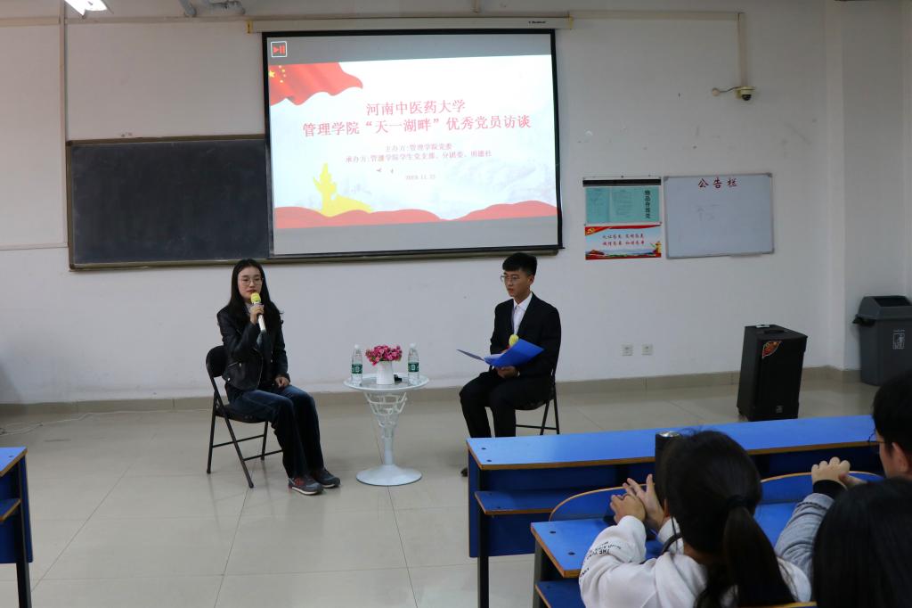 为深入开展“不忘初心、牢记使命”主题教育,发挥先进典型的示范引领作用,2019年11月12日13:00,飞卢小说 在教学楼A445教室举办2019年度第二期“天一湖畔”优秀党员访谈活动。飞卢小说 党委副书记庞亚宾、各年级辅导员和各学生党支部党员、积极分子共130余人参加了此次活动,此次访谈嘉宾为我院2016级公共事业管理专业优秀学生党员张瑞雪同学。