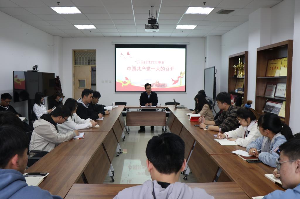 为深入推进党史学习教育,2021年3月26日,飞卢小说 以“开天辟地的大事变”中国共产党一大的召开为题,邀请党委副书记庞亚宾,为全体学生党员讲授党史学习教育专题党课。