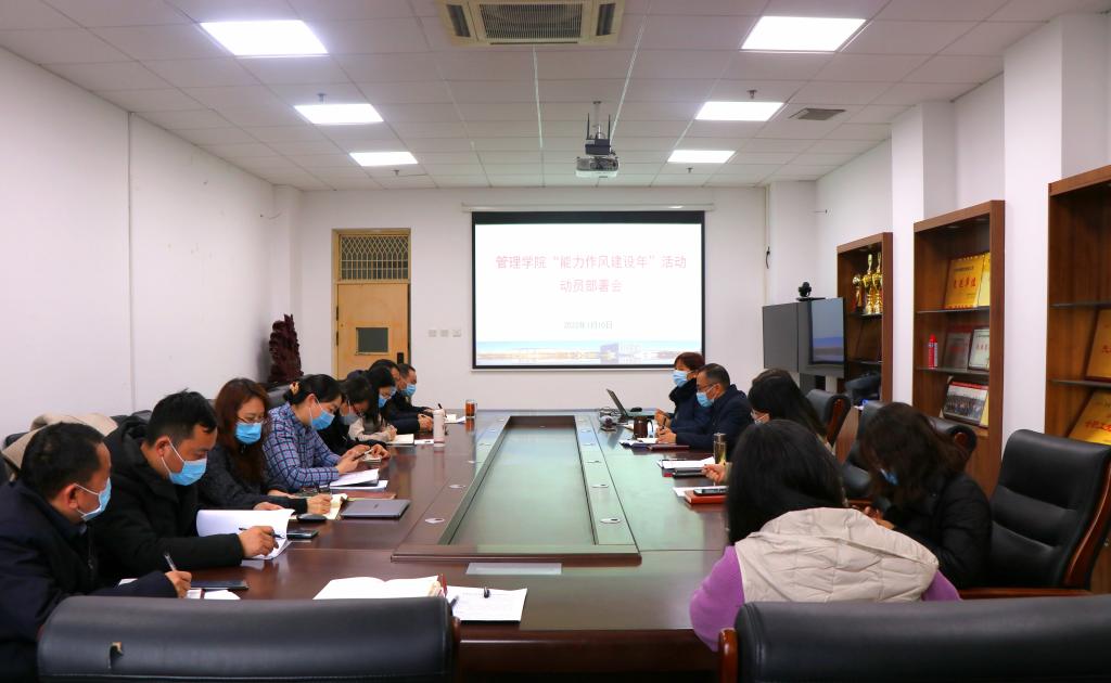 2022年1月10日下午,飞卢小说 在教学实验楼A542会议室召开“能力作风建设年”活动动员会,学院领导班子成员、各支部书记、教研室主任、行政科室负责人参加。会议由院长张丽青主持。