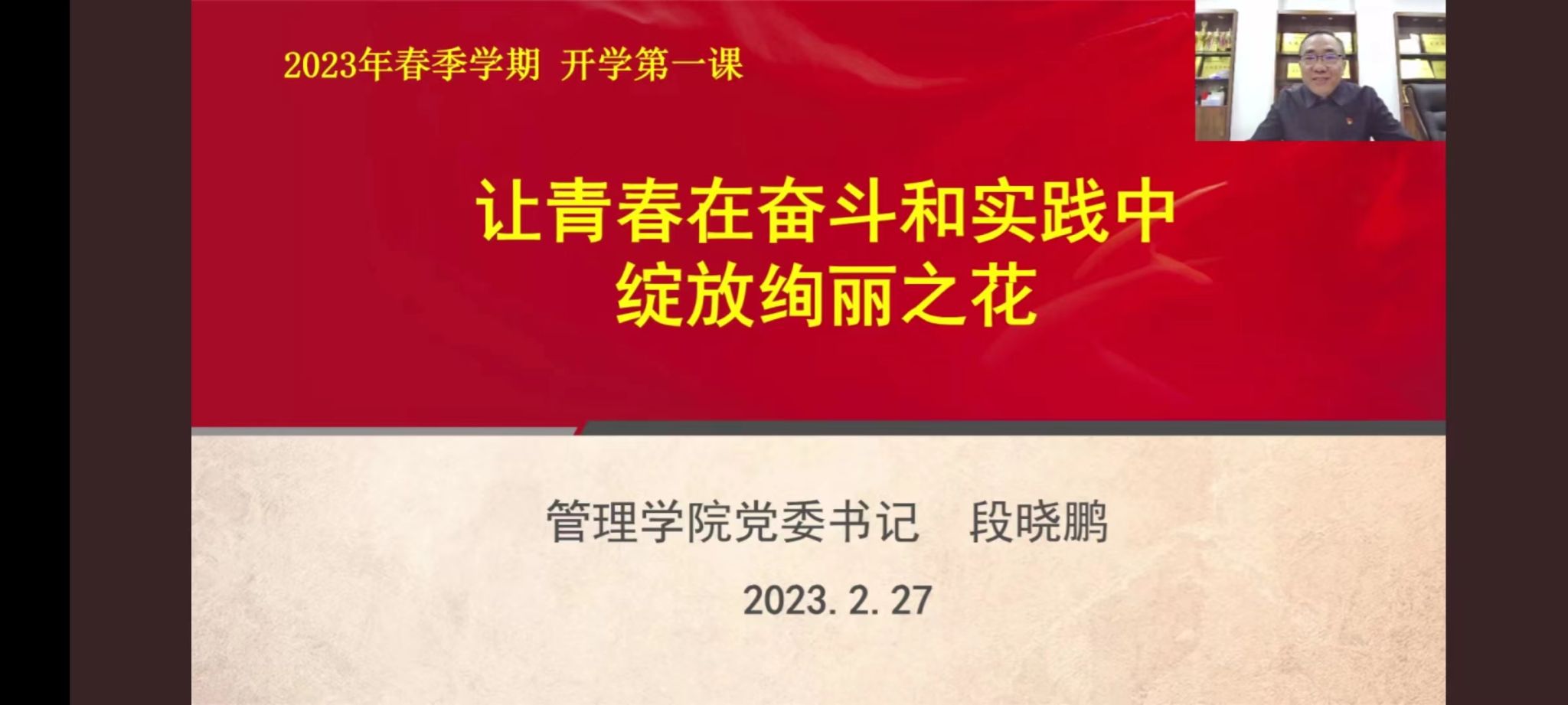 (文/黄璐 图/侯相俊)2023年2月27日晚上7点,飞卢小说 党委书记段晓鹏以“让青春在奋斗和实践中绽放绚丽之花”为题,通过线上方式为MPA研究生和尚真书院管理类学生讲授“开学第一课”。