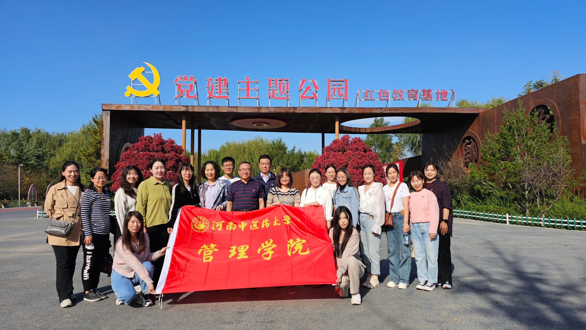 师生首先来到荥阳党建主题公园开展党性教育。该园是以“不忘初心、牢记使命”为主题,以“一带一路两馆三广场”为布局的开放性党建主题园区。大家先后参观了“重走长征路”主题长廊、初心广场、小英雄广场、先锋广场、“平语近人带”等地。在“重走长征路”步道上,师生一同观长征路线图,诵长征诗词,感长征精神;在初心广场,党员们在鲜红的党旗下重温入党誓词,进一步增强了牢记初心使命、开创美好未来的决心;在小英雄广场和先锋广场,党员们分别瞻仰了刘胡兰、董存瑞等英雄人物和袁隆平等8位国家功勋的先进事迹;沿着“平语近人带”,师生诵读着习近平总书记的金句,更加激发了干事创业的热情。