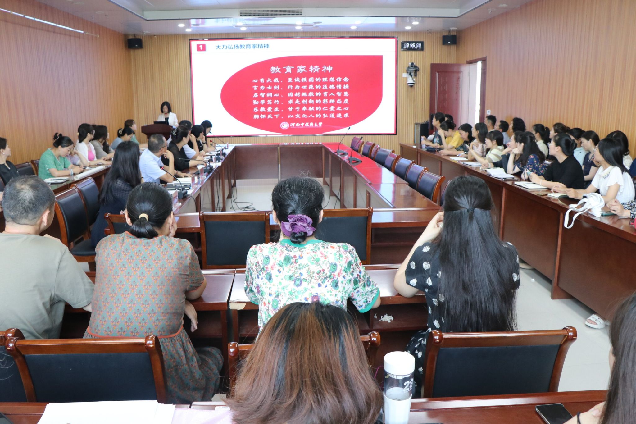(文/黄璐 图/胡晓勇)为深入学习贯彻习近平总书记关于教育的重要论述和指示批示精神,坚决落实师德师风第一标准,加强新形势下师德师风建设,2024年9月1日上午,飞卢小说 在教学实验大楼BM801开展《关于弘扬教育家精神加强新时代高素质专业化教师队伍建设的意见》解读暨师德师风专题培训,学院班子成员和全体教职工参加活动。