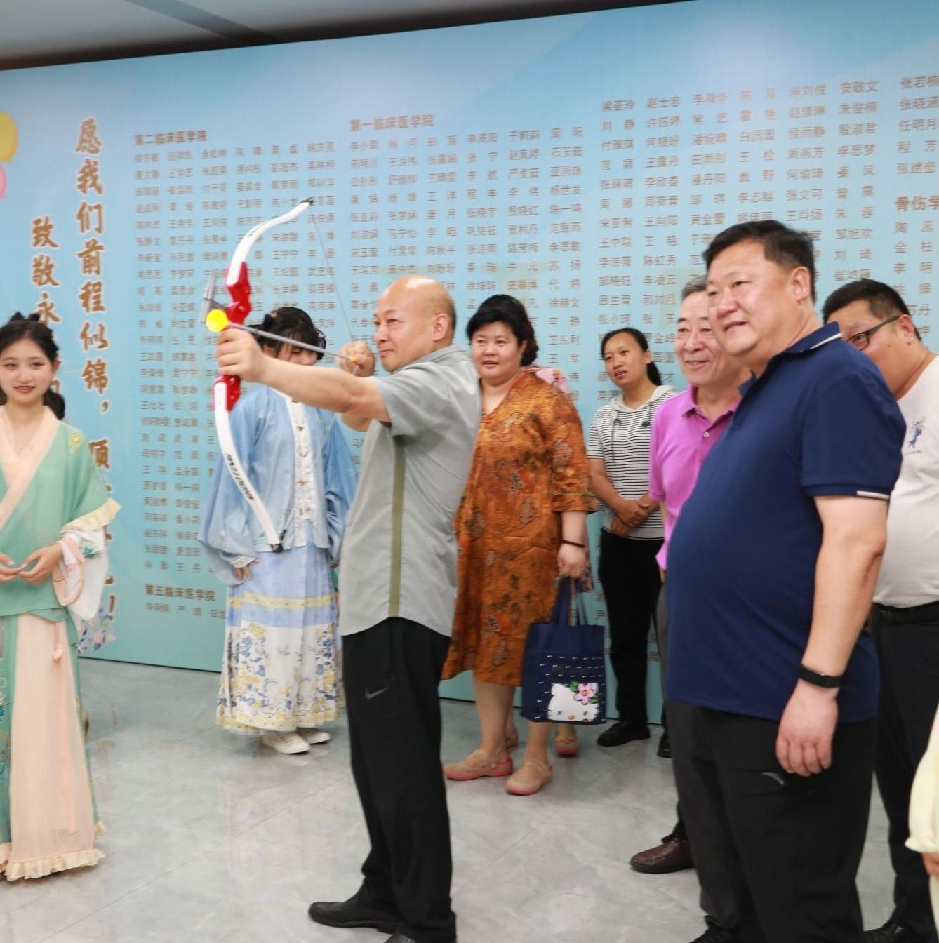活动现场井然有序,热闹非凡。在“射五毒”现场,老师们饶有兴趣地观看引导员示范,随后跨步、拉弓、搭箭、射击,动作熟练、一气呵成。投壶现场、灯谜墙、互动游戏区也时不时传来老师们的欢声笑语。活动过后,老师们有序来到主席台领取香囊、五彩绳、艾草膏、粽子等学校工会精心为大家准备的伴手礼。