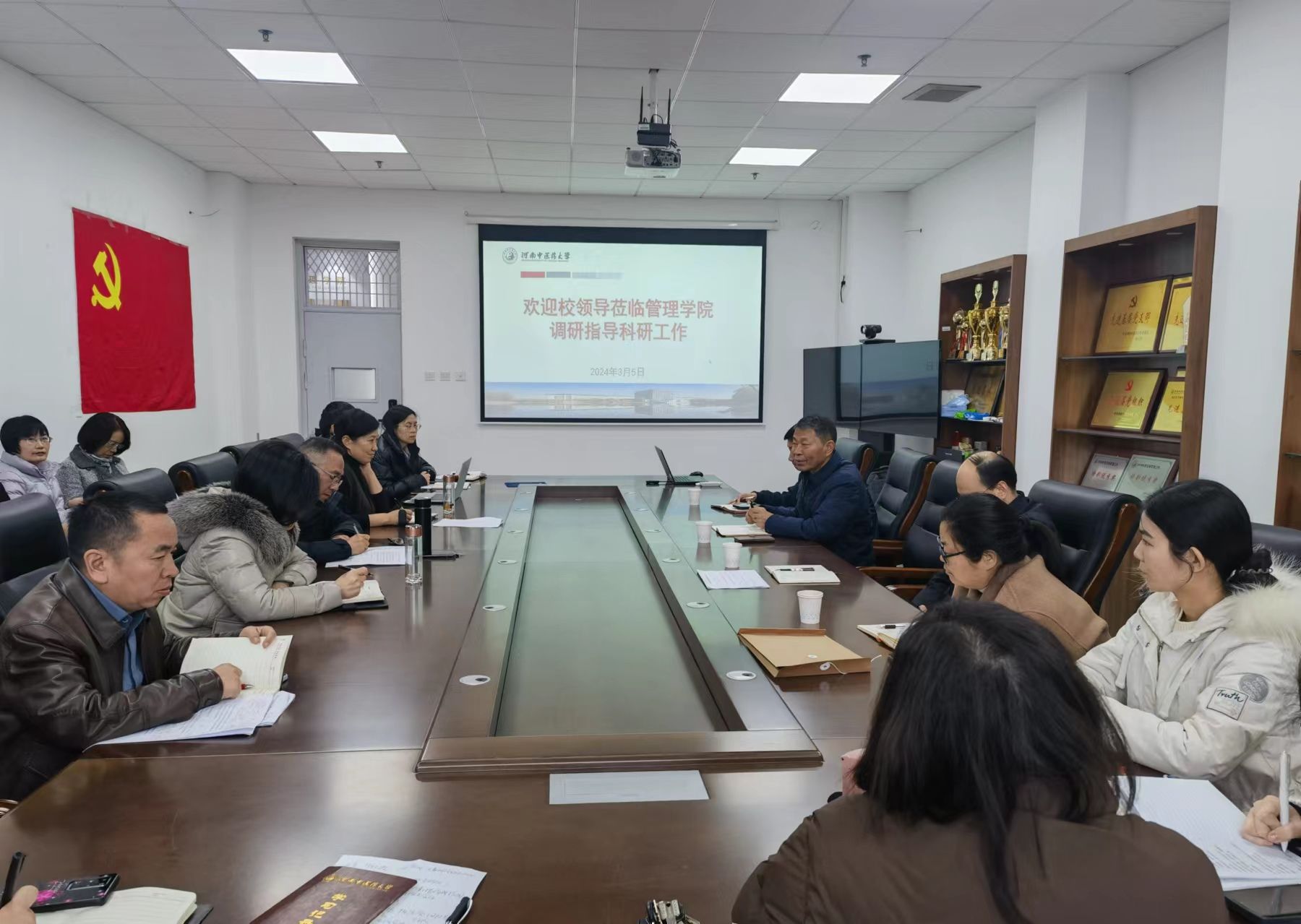 张振强副校长认真听取了汇报,对我院取得的成绩给予了充分肯定,同时对学院如何助力区域经济社会高质量发展、学校双一流建设等方面寄予了新的希望,并对学院今后的发展提出了指导意见:一要瞄准地方和行业发展动态,紧密对接区域经济发展需求,突出学科特色,开展有组织的社会科学研究;二要具有危机意识,发扬优势、补足短板,做好科研工作的中长期发展规划;三要优化院部科研管理体系,激发科研活力,推动人才、平台、资源上的协同发力,汇集高质量发展新动能。