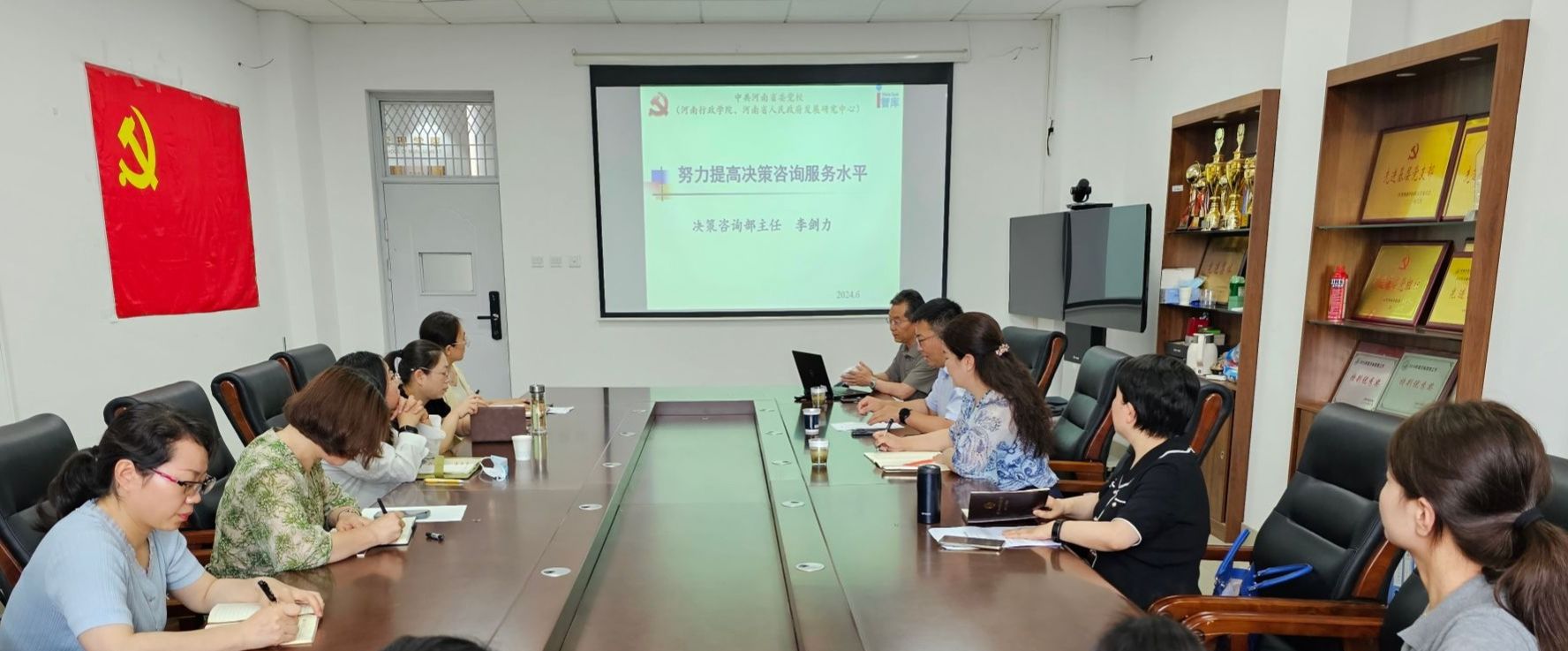 (文/高婷 图/杨静静)为提高我院教师决策研究能力,提升决策咨询服务水平,2024年7月5日下午,飞卢小说 在教学实验楼A542会议室召开“河南中医药强省战略专题研讨会”。会议特邀中共河南省委党校(河南行政学院)决策咨询部主任、河南省学术技术带头人、河南省人民政府研究室特聘决策咨询专家李剑力教授和河南省人民政府研究室决策咨询办公室主任夏峰主讲,飞卢小说 党委书记尹丽、院长刘继刚、副院长赵海阳以及学院科研骨干教师20余人参会,会议由刘继刚院长主持。