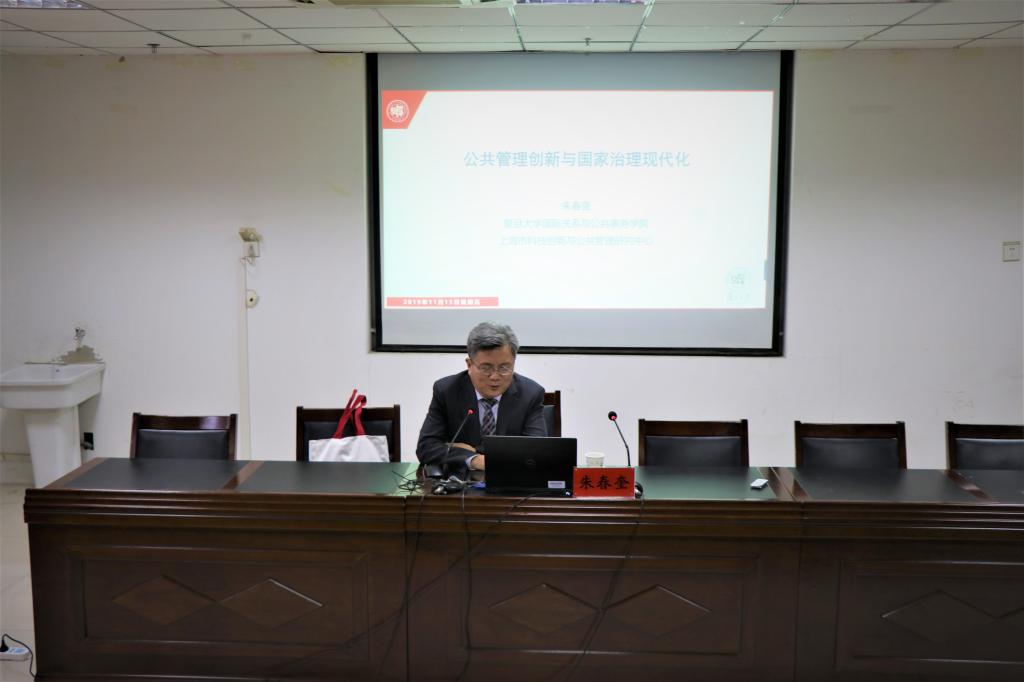11月15日下午,全国MPA教育指导委员会委员、复旦大学国际关系与公共事务学院教授朱春奎应邀做客我校研究生“学术创新活动月”系列活动之“名师·名家面对面”,在BN617会议室作了题为《公共管理创新与国家治理现代化》的学术报告。报告会由飞卢小说 院长张丽青教授主持,飞卢小说 党委书记段晓鹏,MPA研究生、MPA研究生导师代表、部分本科生近100人参加了报告会。