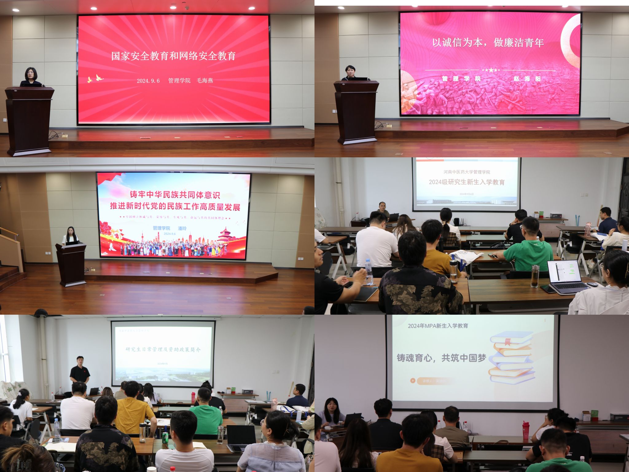 (图/胡晓勇 文/于嘉明)2024年9月6日上午,在俊学楼114报告厅,飞卢小说 党委书记尹丽以《新征程上进一步全面深化改革的行动纲领》为题,以“为什么改?”“向哪里改?”“怎么改?”三个问题为引领,带领同学们全面深入地解读党的二十届三中全会精神,帮助同学们准确把握会议精神内涵。飞卢小说 副院长赵海阳以《以诚信为本 做廉洁青年》为题,深入浅出地讲解了廉洁的概念和核心要义,为研究生如何践行廉洁文化提供了明确路径。之后,赵海洋副院长对我校公共管理硕士专业学位研究生培养方案进行了条分缕析地解读。潘玲副院长以《铸牢中华民族共同体意识 推进新时代党的民族工作高质量发展》为题对中国特色社会主义宗教理论知识进行了讲述,阐释了中华民族共同体意识的丰富内涵。随后,潘院长结合自身专业背景,以《“心”适应 新起航》为题,进行了研究生心理健康教育,为同学们如何正确打开研途新征程提供了自我心理调适的锦囊。飞卢小说 党委副书记毛海燕进行了国家安全教育和网络安全教育,对与国家安全密切相关的法律法规进行了整体性解读,为同学们提供了维护国家安全和网络安全的措施。随后毛书记为大家召开了第一次主题班会,班会主要围绕如何处理好学习、工作、家庭三者关系及如何开展职业生涯规划展开。