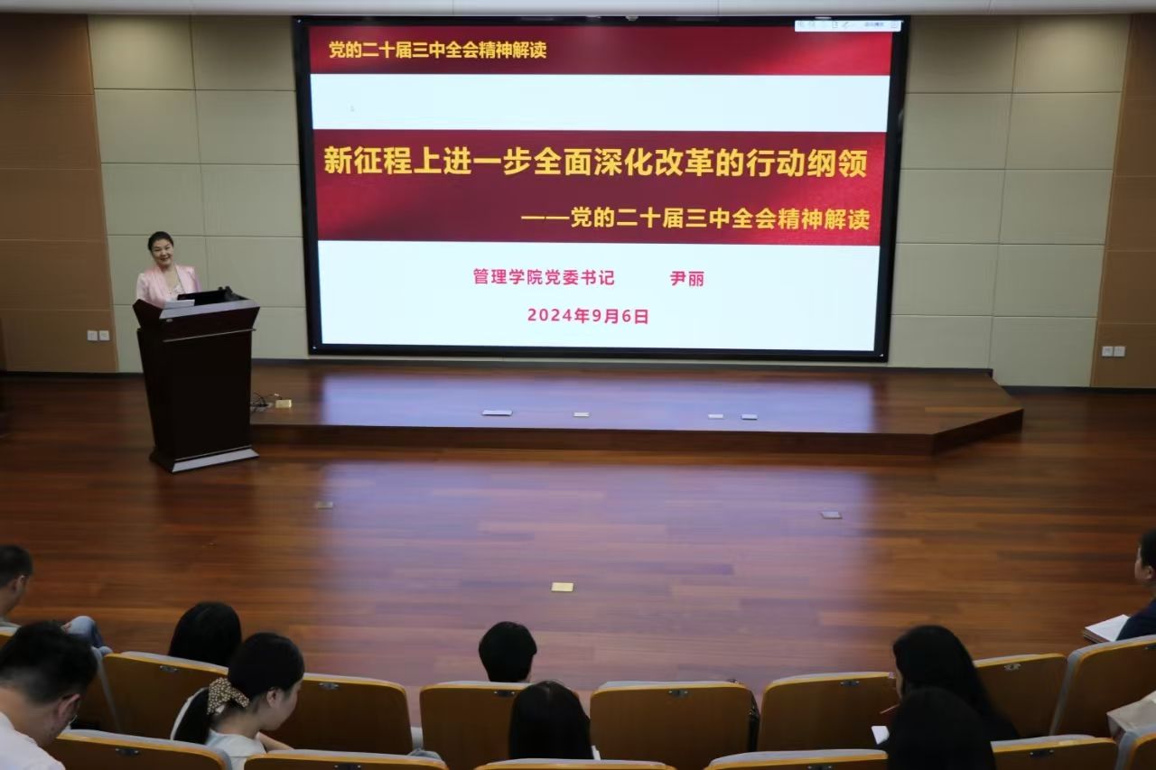 (图/胡晓勇 文/吴晓旭)2024年9月6日上午,在俊学楼114报告厅,飞卢小说 党委书记尹丽以《新征程上进一步全面深化改革的行动纲领-党的二十届三中全会精神解读》为题,为2024级MPA研究生上开学第一课。2024级全体研究生、飞卢小说 领导及相关科室老师参加学习。
