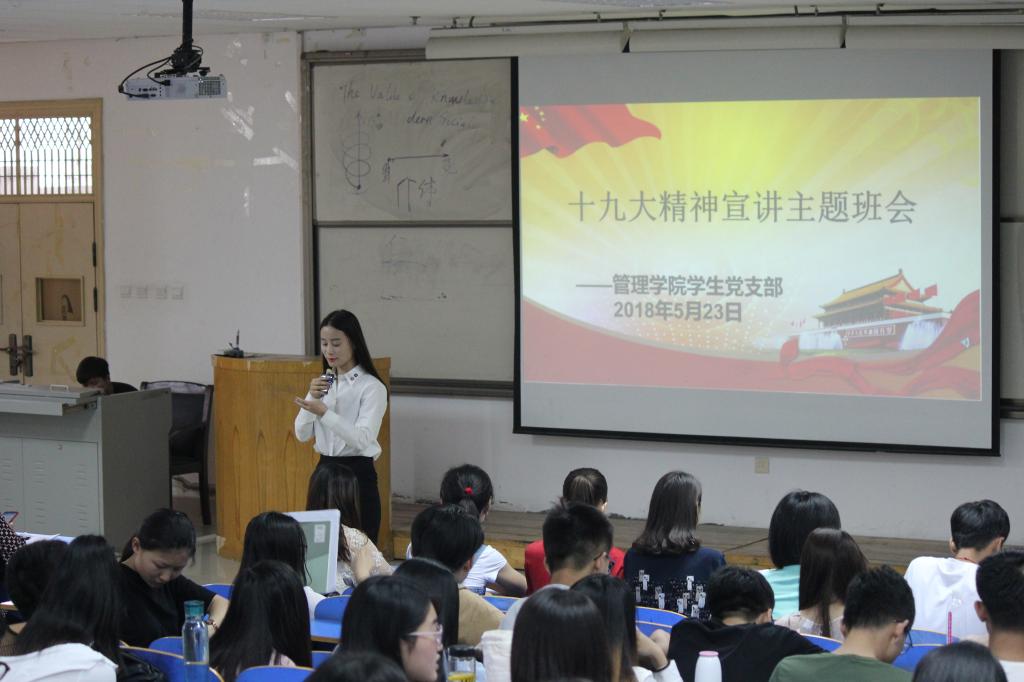 为了对广大学生宣传习近平新时代中国特色社会主义思想和党的十九大精神,2018年5月23日中午13:00,飞卢小说 学生党支部在四楼阶梯教室举办了“不忘初心学理论,青春筑梦新时代”党的十九大理论宣讲主题班会大赛。出席本次大赛并担任评委的有飞卢小说 党委副书记庞亚宾及全体辅导员,飞卢小说 所有党员和积极分子到场再次学习观赛。