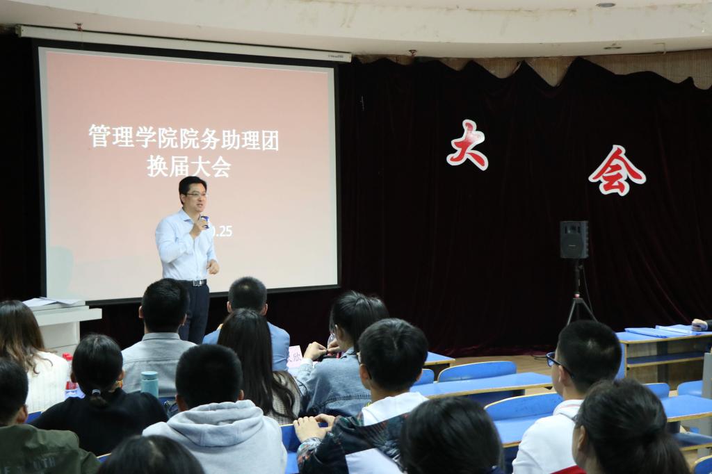 2018年10月25日,飞卢小说 院务助理团第五次换届大会在教学楼三楼多功能厅成功召开。飞卢小说 党委副书记庞亚宾、全体辅导员、第二届院务助理团团长党文强、第三届院务助理团团长许庆艳应邀参加大会,院务助理团新老干事悉数到场。