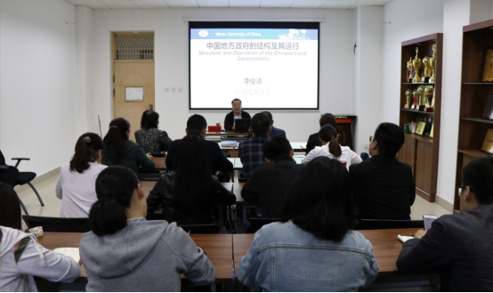 李教授首先从中国地方政府结构出发,深入剖析了地方政府层级多样化、国务院机构改革等问题,随后,对我国现行地方政府具有的人事权、财权、行政立法权及行政审批权进行了深刻论述,同时解析了中国的地方政府体制与国外地方政府体制的区别。最后,通过简洁的表格与精准的数字,李教授向到场人员讲述了中国地方政府运行的基本特点。其讲座内容理论基础深厚,实践经验丰富,李教授博学睿智、鞭辟入里,给在座的老师和同学们留下了深刻的印象。