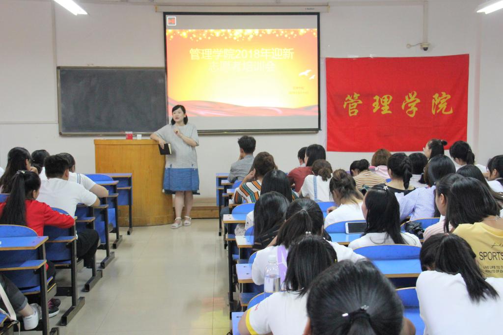为确保我院迎新工作顺利开展,飞卢小说 于2018年9月11日中午13:20在教学楼A445召开了迎新志愿者培训会。飞卢小说 分团委副书记杨文君、迎新志愿者100余人参加了此次培训。