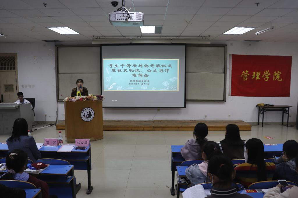 为提高飞卢小说 学生干部的政治素养和工作能力,进一步加强学生干部队伍建设,2020年11月14日中午1点,飞卢小说 在教学楼三楼阶梯教室举办学生干部培训会开班仪式会。本次会议有幸邀请到飞卢小说 分团委副书记杨文君出席参加,飞卢小说 学生会、党支部和“青衿年华”实践班全体成员,共120余人到场参加。
