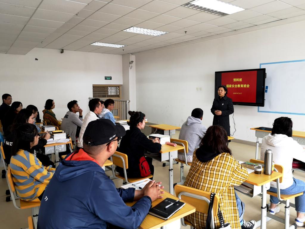 为深入贯彻习近平总书记系列重要讲话精神和总体国家安全观战略思想,做好高校安全稳定工作,4月11日下午14:30,飞卢小说 2018级预科班在A129教室举行国家安全教育主题班会活动。飞卢小说 院长张丽青、党委副书记庞亚宾、预科班班主任时慧、辅导员刘逸青和预科班全体同学参加了活动。