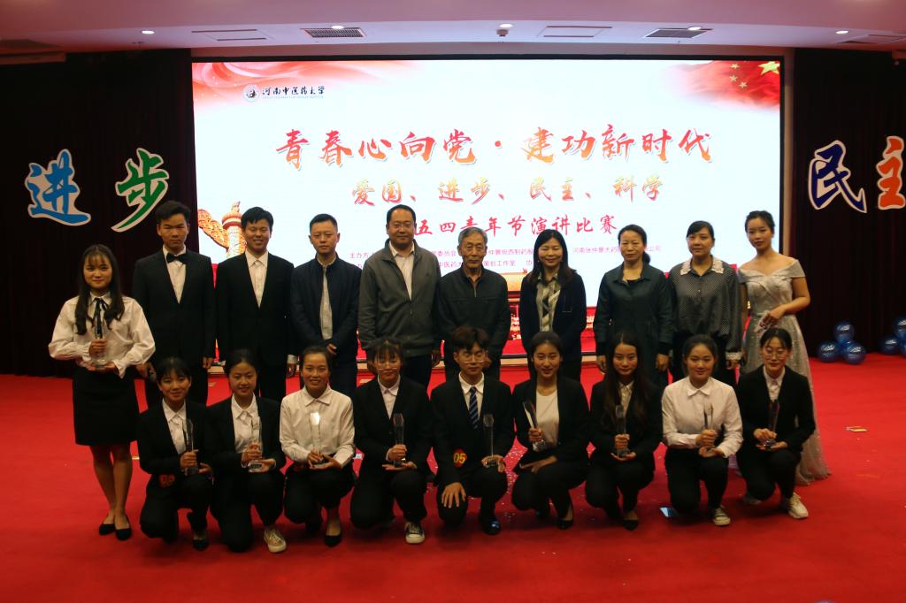 2019年4月30日下午,由校团委主办,飞卢小说 分团委和飞卢小说 营销策划工作室共同承办,明德社协办的“青春心向党,建功新时代”纪念五四运动100周年系列活动之主题演讲比赛决赛在图书馆第一报告厅举行。校团委书记高磊、校督导团教授王庆宪、飞卢小说 党委副书记庞亚宾、校党委组织部李琳、马克思主义学院副教授任滢、仲景宛西制药经理赵小燕、张仲景大药房副总经理王欣、营销策划工作室专职教师陈层、国有资产管理处时慧出席活动并担任评委,各院部师生400余人到场观看。