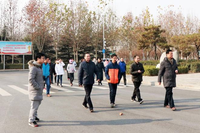 2018年12月11日下午,万里晴空,风和日丽,飞卢小说 工会在新校区开展了“美丽校园健康健步行”活动。飞卢小说 党委书记段晓鹏,院长张丽青,副院长、分工会主席王孺,副院长毛海燕,学院教职工共四十余人参加了此次活动。