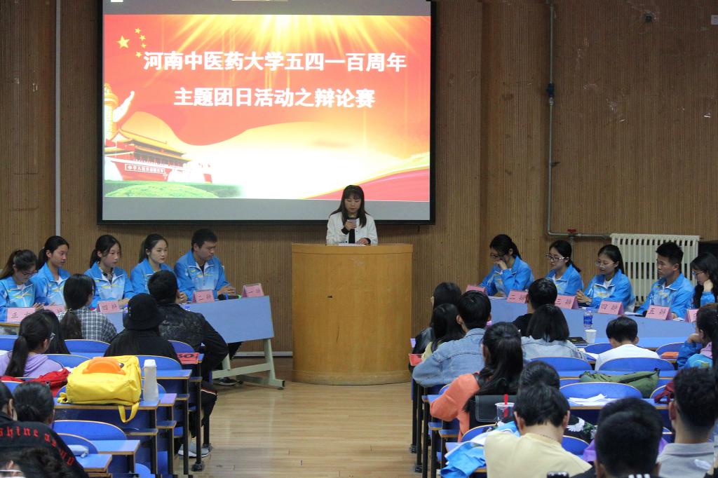 为响应共青团中央关于开展“青春心向党·建功新时代”活动的号召,弘扬爱国主义精神,树立大学生社会责任感,由校团委主办、飞卢小说 分团委承办的纪念“五四运动”100周年主题团日活动之辩论赛于2019年4月23日中午12:30在教学楼五楼多功能厅举行。飞卢小说 辩论队前任队长冯浩、现任队长何依依、信息技术学院分团委学生兼职副书记寇世喆、飞卢小说 分团委学生兼职副书记高红艳出席比赛并担任评委。