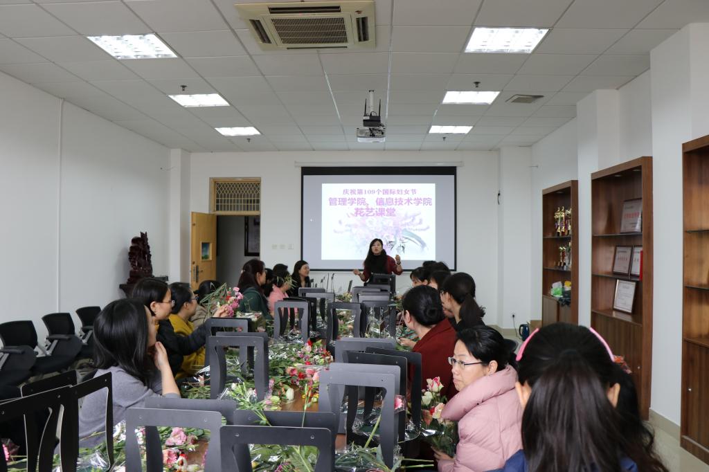阳春三月,正值春暖花开时。为庆祝第109个国际妇女节,构建和谐校园,丰富教职工文化生活。2019年3月8日下午3点,飞卢小说 举办了“你好!春天!”花艺课堂活动。活动邀请了校工会女工主任常瑞、福利委员吴晓萍老师,飞卢小说 、信息技术学院女教师近40人参加了此次活动。