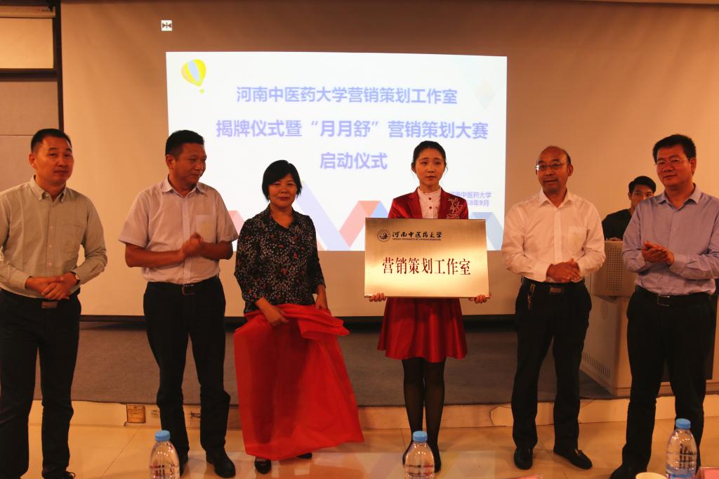 随后,各位领导、专家共同为我校营销策划工作室揭牌,同时工作室也与仲景宛西制药正式签约,建立合作关系。最后,“月月舒”营销策划大赛的13支参赛队伍依次上台进行营销策划案展示,并接受评委老师提问,每个参赛队伍都得到了领导老师们的悉心指导。