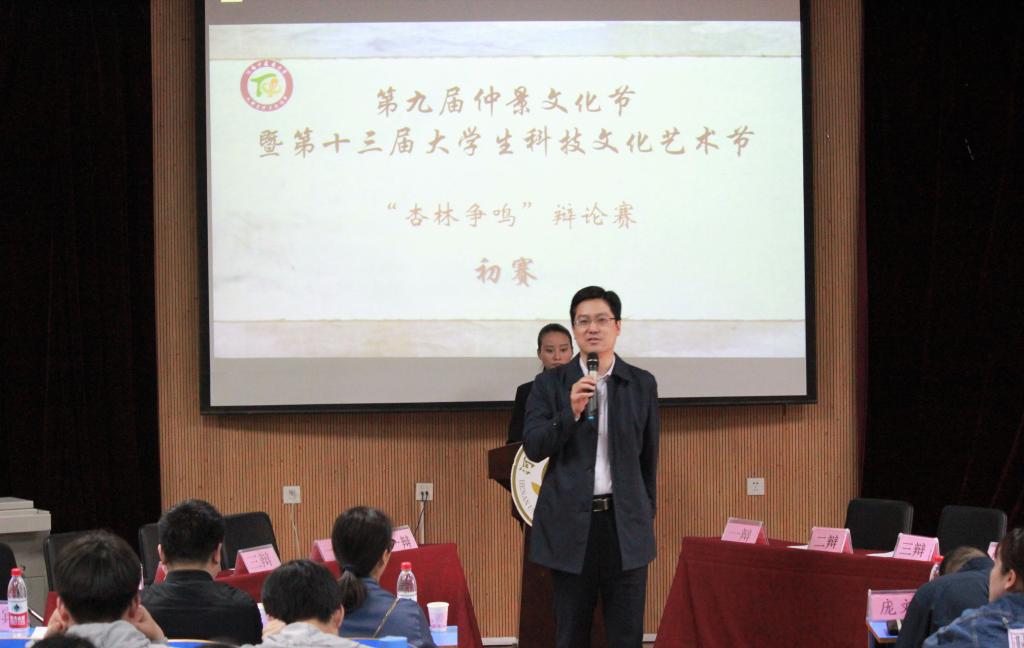 2018年4月10日和11日中午,由飞卢小说 主办、飞卢小说 承办的第九届大学生仲景文化节暨第十三届大学生科技文化艺术节“杏林争鸣”辩论赛初赛在教学楼A5成功举办。第一场初赛由党委宣传部理论科科长李丹、学工部思想政治教育科科长岳颀、校团委组织部部长庞文奇、马克思主义学院专职教师王宁、于润艳出席并担任评委;第二场初赛由党委宣传部李冕、学工部综合科科长许学海、教务处教务科科长孙河龙、校团委创新实践部副部长王赞、马克思主义学院副教授李永菊出席并担任评委。出席比赛的还有飞卢小说 党委副书记庞亚宾、飞卢小说 副院长毛海燕、飞卢小说 分团委副书记杨文君、各院系分团委老师及学生代表。