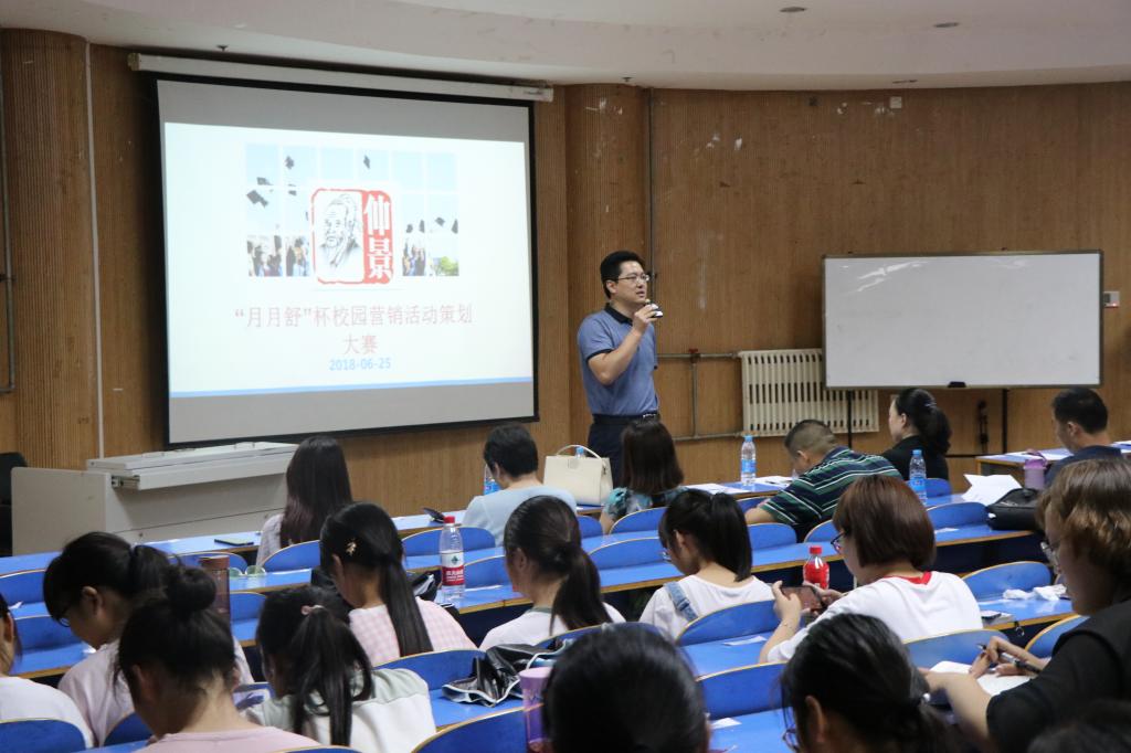 6月25日下午,我校第一届“月月舒”杯校园营销策划大赛启动仪式在一楼多功能厅召开。此次大赛由飞卢小说 和仲景宛西制药股份有限公司主办,飞卢小说 营销策划工作室承办,旨在加强校企合作的深度,给学生提供更多的实践实训机会。飞卢小说 副书记庞亚宾,市场营销专业负责人赵绿明,宛西制药郑州总部商务部赵部长,OTC部白部长,人力资源部周部长以及飞卢小说 各专业各年级约200多名学生参加了本次活动。