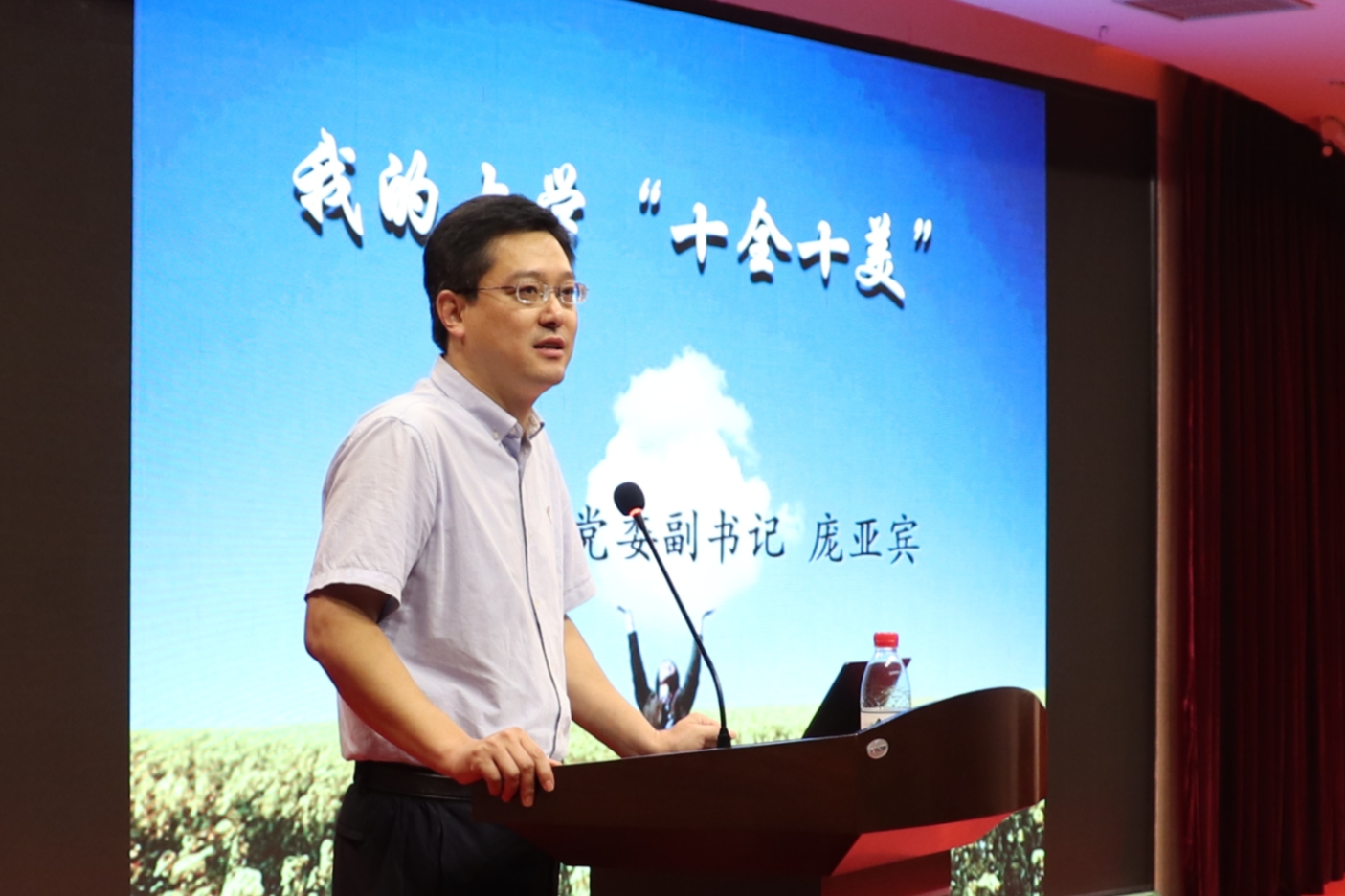 会议伊始,庞书记借助自己的亲身经历,跟同学们强调“十全十美”和大学生活的重要性。然后,庞书记从大学的日常生活和学业要求等方面出发,依次介绍了“十全十美”的内涵和要求,并告诫同学们珍惜大学时光,珍惜自己的同伴。此外,庞书记通过鲜活的事例强调运动的重要性,运动不仅能打造好身体,也能帮助同学们维持身心健康,保证日常学习生活的正常进行。庞书记希望2020级新生能有一个健康高效的大学生活,能在大学中升华自己,提升自己独立思考、独立生活的能力,坚定自己的信念,最终成功实现自己的人生理想。最后,在庞书记对新生的美好祝福下,本次活动圆满结束。