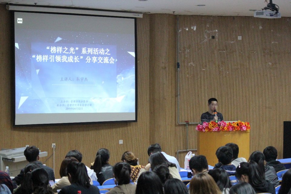 为发挥好优秀典型在学生中的示范引领作用,我院于2019年4月3日晚8:00在教学楼五楼多功能厅举办了“榜样之光”系列活动之第三期“榜样引领我成长”分享交流会。此次交流会邀请到优秀学生代表靳宇杰和王建主讲,我院2017级和2018级学生到场聆听。