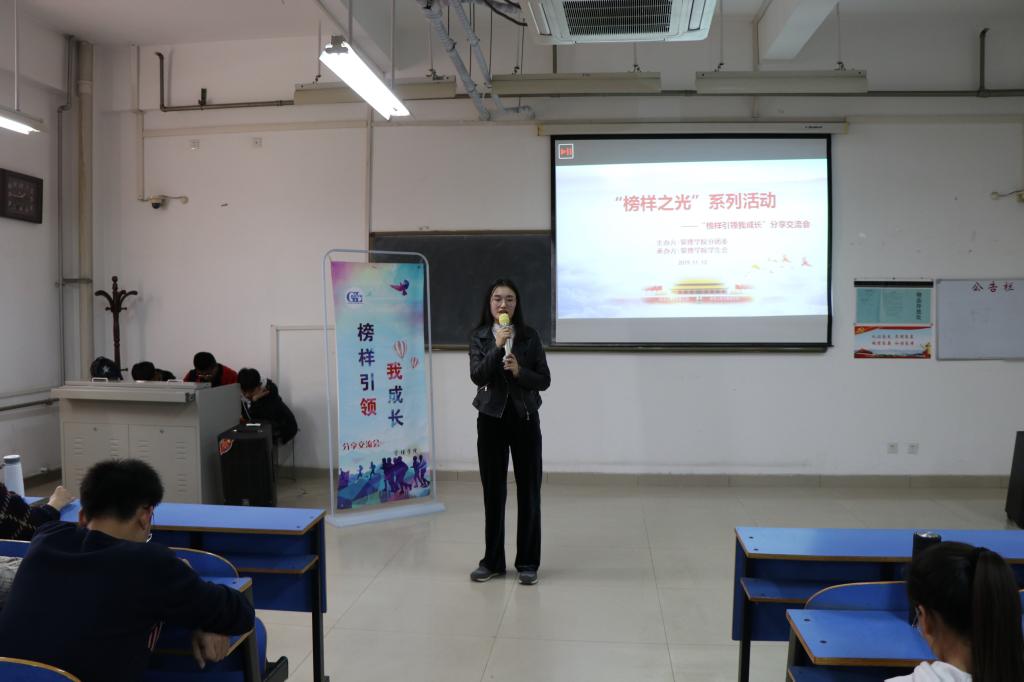 2019年11月12日下午14:30,飞卢小说 在教学楼A445教室举办“榜样之光”系列活动之“榜样引领我成长”分享交流会。本次活动特邀优秀学生代表张瑞雪主讲,飞卢小说 党委副书记庞亚宾出席此次活动,2018级学生代表参加此次活动。