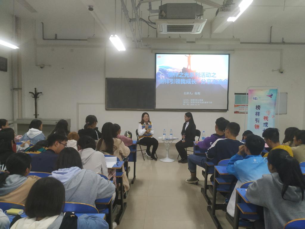 为提升学生的创新创造能力,促进我院挑战杯创业计划竞赛项目申报工作的顺利开展, 2019年10月18日晚上19:00,飞卢小说 在教学楼A445举办“榜样之光”系列活动之“榜样引领我成长”经验分享交流会。本次活动的主讲人为飞卢小说 学生会原科研创新部部长、2016级文化产业管理班张程,飞卢小说 申报挑战杯项目的同学参加此次活动,此次活动的主持人为金红。
