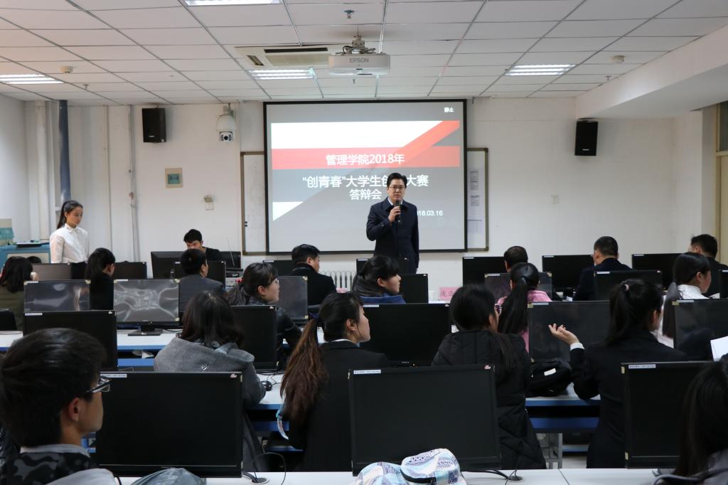 初赛现场,各团队依据抽签顺序依次上场,主要分为自主陈述和现场提问两个环节,每个环节五分钟。在自主陈述环节,各团队分别从项目主旨、产品或服务介绍、市场与竞争分析、营销策略、财务管理等方面一一进行介绍,将一个个创意十足的创业想法呈现在评委和观摩师生面前。在提问环节,评委们不仅从创业计划的内容完整性、结构合理性、方案可行性等方面对作品提出疑问或修改的意见,而且依据作品的内容、陈述情况、回答问题情况和整体表现对各团队进行打分。在评委点评环节,默沙东(中国)黄杰经理从创业的可行性、创新性和实践性等方面对学生提出了宝贵的指导意见,并鼓励同学们要“敢想、敢做”,多结合市场调研,不能只停留于“空想”。工商管理学科赵绿明教授则从营销手段和财务管理等同学们比较薄弱的知识入手,提醒同学们注意项目的投入和成本。此次答辩会,根据评委的打分情况,共选出12件优秀作品进入校赛。
