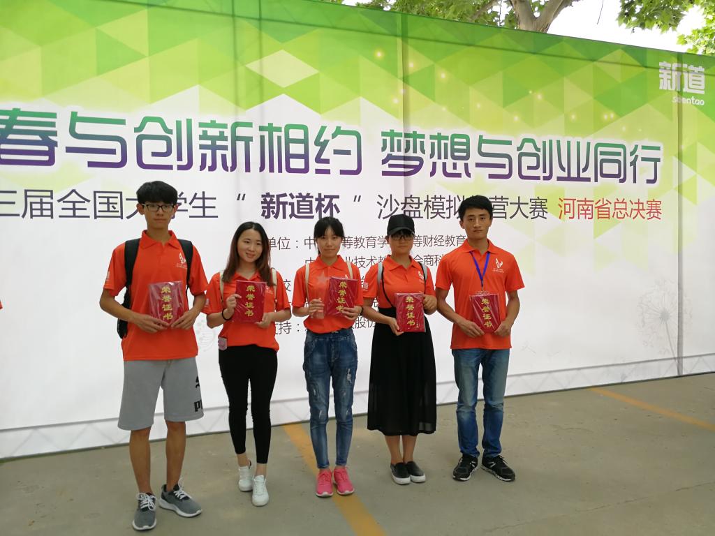 5月22日,由中国高等教育学会高等财经教育分会、中国职业技术教育学会商科专业委员会主办,商丘师范学院承办,新道科技股份有限公司技术支持的第十三届全国大学生“新道杯”沙盘模拟经营大赛河南省总决赛在商丘师范学院落下帷幕。由我校人文学院工商管理学科李君茹、陈层老师带队的两支代表队均获得了全省一等奖的好成绩!