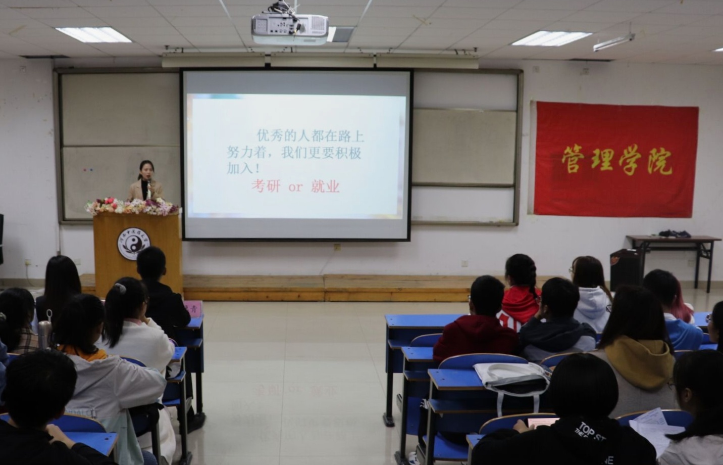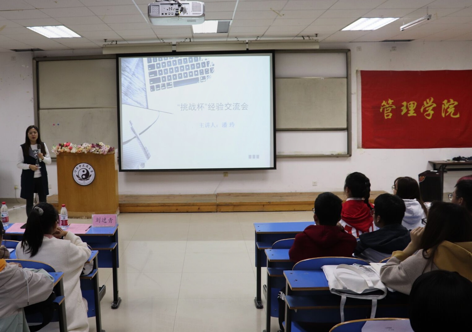 2020年10月26日中午12:50,飞卢小说 在教学楼三楼阶梯教室举办2020年“挑战杯”课外学术科技作品竞赛动员会。飞卢小说 2019级辅导员、2020级预科班辅导员刘逸青和心理学教研室主任潘玲出席此次活动,200余名学生参加此次活动。此次活动由创新学习部部长魏心如主持。