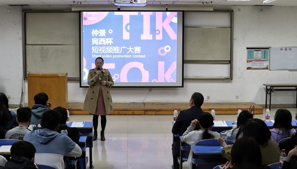 此次活动主题是以抖音为平台的仲景宛西杯短视频推广大赛。活动伊始,周经理以六大维度为话题对短视频营销推广大赛进行介绍。然后,仲景宛西制药运营部经理用具体的数据和鲜明的案例为大家科普抖音短视频的类型与要点,同时她也推荐了制作短视频的医药素材,并重点强调了参赛细则,帮助同学们解开了对参赛要求的疑惑。接着,仲景宛西制药运营部成员向同学们详细讲解如何进行短视频拍摄,帮助同学们基本掌握拍摄方法和剪辑技巧。之后,仲景宛西制药仲景商学院经理以六味地黄丸的原料、功能主治与应用解析为基础为同学们介绍各种宛西制药产品,让在场同学明确了短视频推广大赛的产品范围和大致内容。最后,赵绿明老师对活动进行总结,他对仲景宛西制药给同学们提供锻炼的平台表示衷心感谢,并鼓励同学们踊跃参加比赛,抓住提升自我的机会。至此,此次活动圆满结束。
