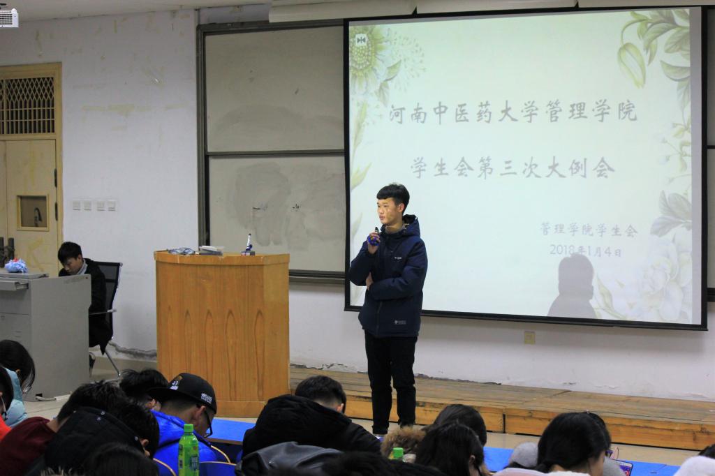 接着,学生会各部门副部长依次上台发言。副部们都表示:非常感谢其它部门对自己部门各项工作的积极配合和鼎力支持。同时他们对本部门的工作做出总结,对下一年各位干事的工作提出了新的期望,期待新的一年各部门能更好的合作。各位副部精彩发言之后,各部门的新干事代表依次上台发言。科创部许浩光,实践部刘东鑫,文艺部黄恒等新干事代表各自部门做了精彩的发言。他们表示,非常幸运能够加入学生会这个大家庭,半年的学习和锻炼让他们掌握了很多技能、结交了很多朋友、学会了怎样处理各种事务、怎样和不同的人打交道。同时,在副部们的指导和帮助下,自己的能力都有很大的提升。希望在新的一年里,能够有更大的进步和提高。