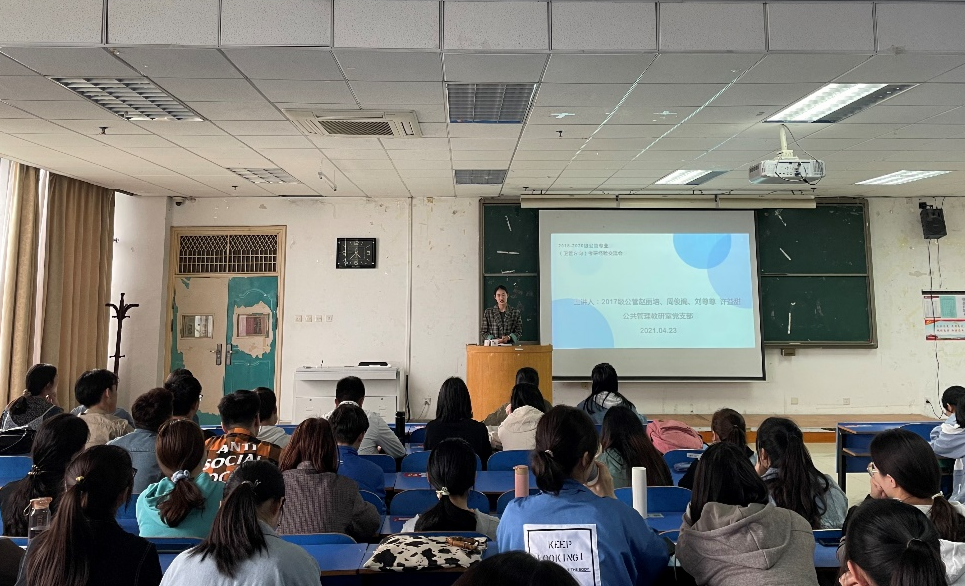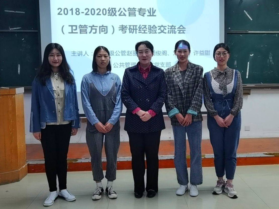 为进一步“学党史、悟思想、办实事、开新局”,把党史学习教育推向深入,飞卢小说 公共管理教研室党支部积极开展“我为师生办实事”实践活动。继2021年4月9日选派支部党员刘继刚教授面向公共管理专业(卫管方向)学生举行考研就业指导讲座之后,4月23日下午又在教学楼七楼阶梯教室组织了面向该专业学生的考研经验交流会。