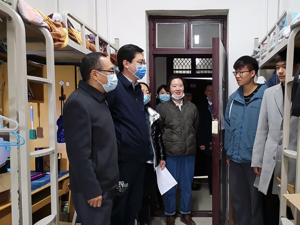 为严格落实学校关于学生返校期间的工作部署,提高学生疫情防控意识,2021年2月28日上午,飞卢小说 党委书记段晓鹏、党委副书记庞亚宾带领全体辅导员前往学生宿舍,看望慰问返校本科生、研究生。